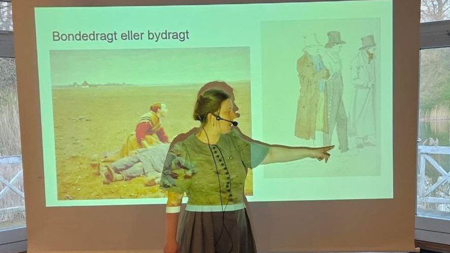 Vi dykker ned i de arkæologiske kilder, spinding, vævning, farvning og snit, og ser på samtidens billeder af mennesker. Ditte medbringer rekonstruktioner af dragter og genstande fra oldtiden, som I kan føle på egen krop.